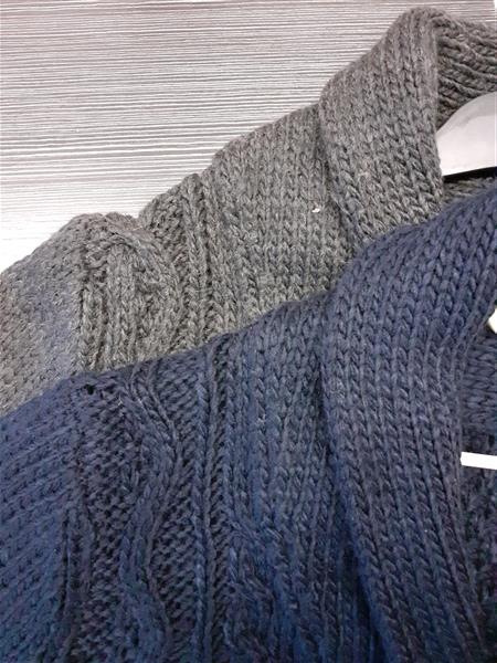 Vastag kötött pulóver, nyaga igény szerintle és felhajtható, könnyű, elegáns viselet.