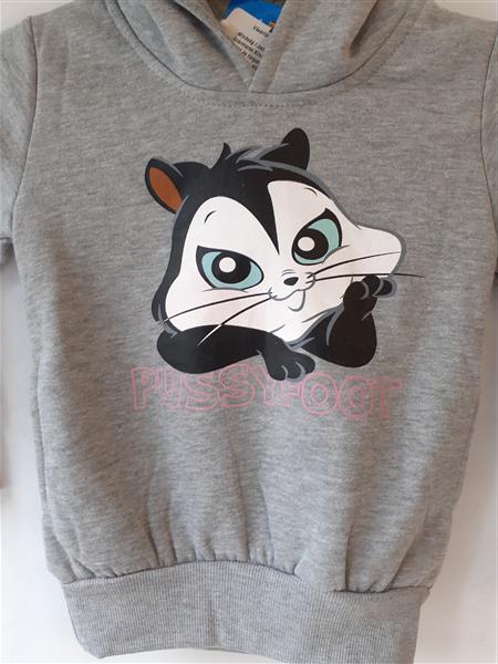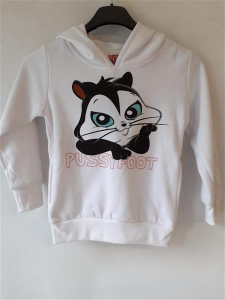 Meleg, bolyhos belsejű kapucnis pulóver, alyán és ujján patent kötéssel, béléses kapucnival. Anyaga 85% pamut, 15% poliészter. Ajanlott mosási hő 30°C.
