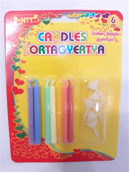 Tortagyertya színeslángú 6db-os